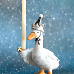 This delightful ceramic goose looks like it's stepped out of a classic holiday tale, dressed in a whimsical, crown-tipped nightcap and holding a glowing candle to light its way through a snowy winter's night.
