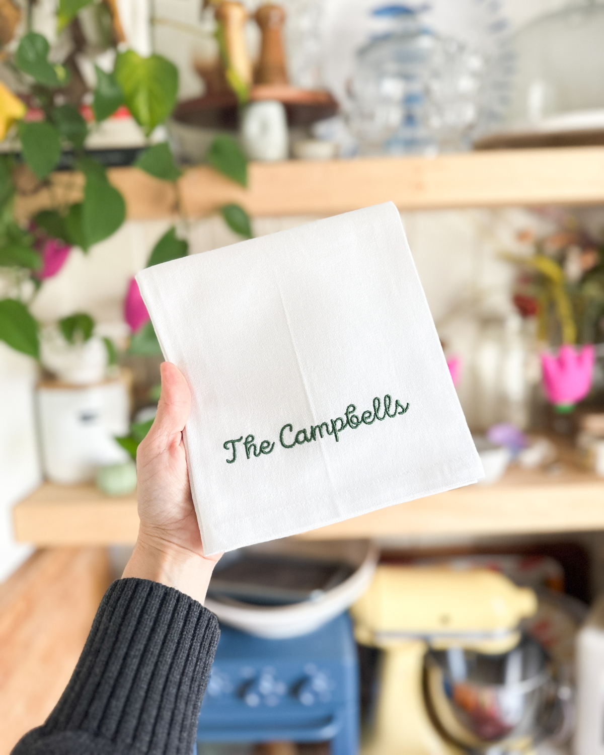 Customize it with an embroidered name, phrase, or special saying to create a thoughtful gift or keepsake for any occasion. Whether you’re celebrating a new home, a wedding, or simply love a personalized touch, this classic tea towel brings charm and warmth to every kitchen.