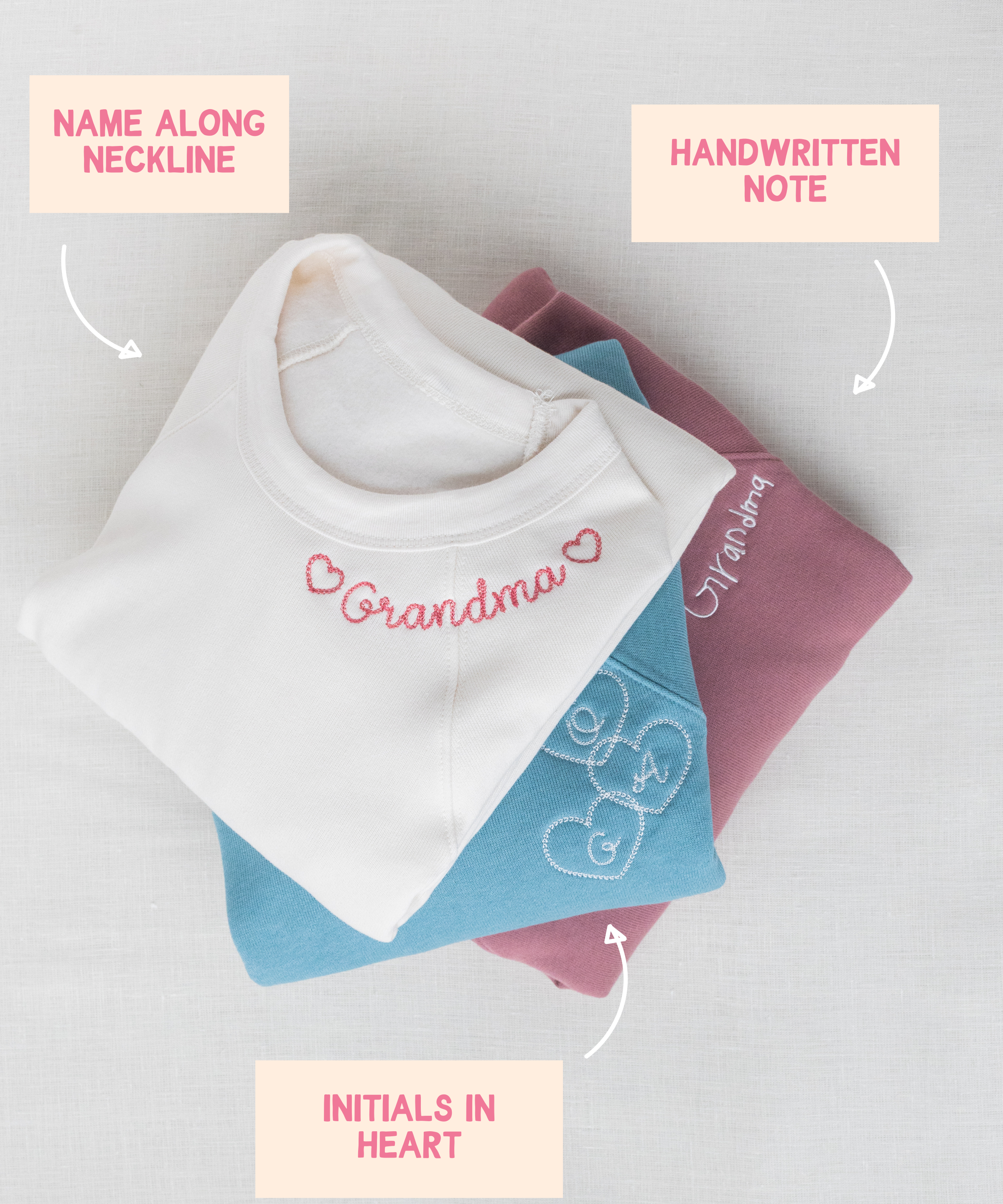 Embroidered with your choice of thread colors and fonts.